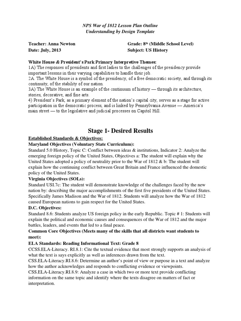 War of 1812 Middle School Lesson Plan War Of 1812 Argument